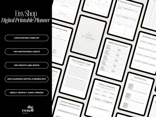 Etsy Shop Digital Printable Planner Canva Template | 43 Page Minimal Neutral Aesthetics PLR MRR | Digital Etsy Business Organizer for Sellers