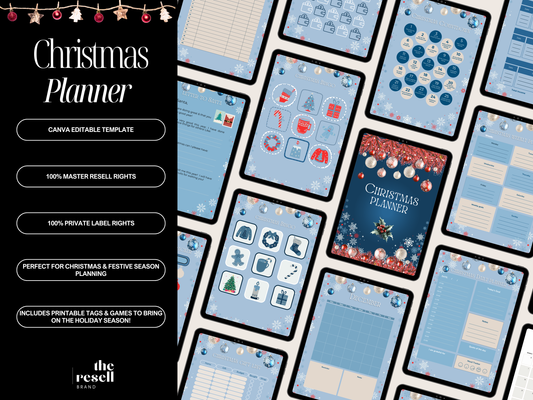 Christmas Holiday Planner Canva Template | 38 Page Holiday Festive Printable w/ Tags, Bingo, Games | PLR MRR Digital Organizer for Canva