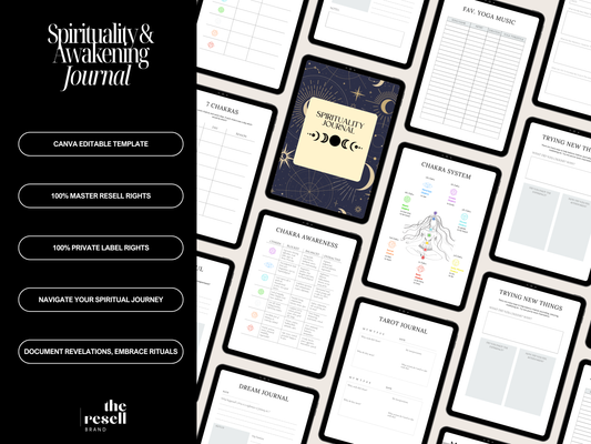Spiritual & Awakening Journal Canva Template | 57 Pages Editable | Mindfulness Workbook Planner PLR + MRR | Digital Download for Resale