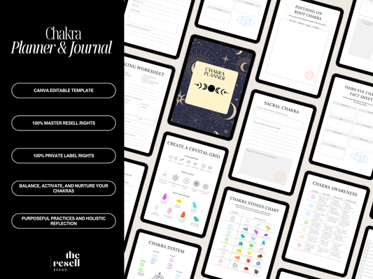Chakra Planner & Journal Canva Template | 41 Pages Editable | Energy Healing Workbook PLR + MRR | Digital Spiritual Journal
