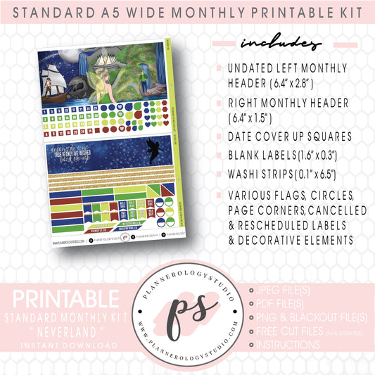 Neverland Foil Ready Monthly Kit Digital Printable Planner Stickers (Undated All Months for Standard A5 Wide Planners)