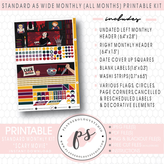 Scary Movie Foil Ready Monthly Kit Digital Printable Planner Stickers (Undated All Months for Standard A5 Wide Planners)