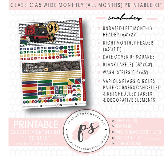 H Express (Harry Potter Inspired) Monthly Kit Digital Printable Planner Stickers (Undated All Months for Classic A5 Wide Planners)
