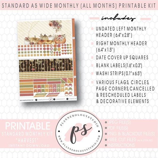 Harvest (Fall/Thanksgiving) Monthly Kit Digital Printable Planner Stickers (Undated All Months for Standard A5 Wide Planners)