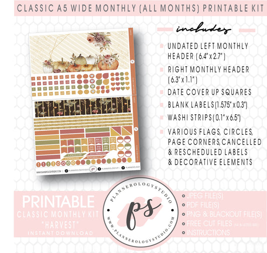 Harvest (Fall/Thanksgiving) Monthly Kit Digital Printable Planner Stickers (Undated All Months for Classic A5 Wide Planners)