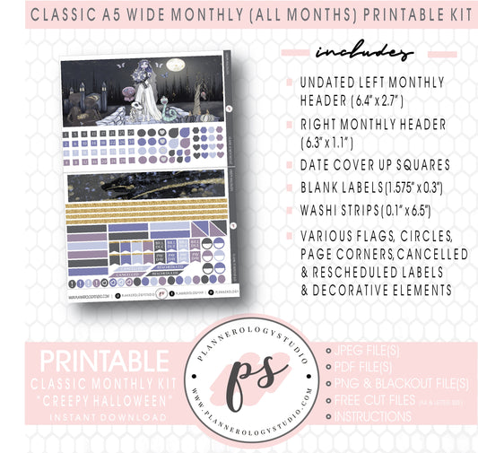 Creepy Halloween Monthly Kit Digital Printable Planner Stickers (Undated All Months for Classic A5 Wide Planners)