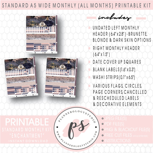Enchantment Monthly Kit Digital Printable Planner Stickers (Undated All Months for Standard A5 Wide Planners)