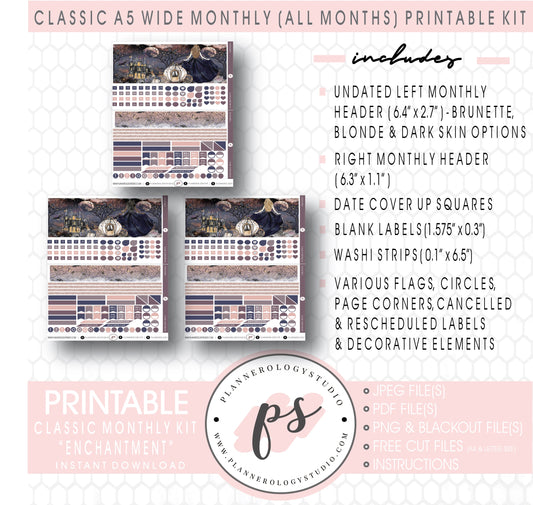 Enchantment Monthly Kit Digital Printable Planner Stickers (Undated All Months for Classic A5 Wide Planners)