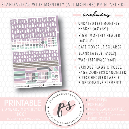 Boo Halloween Monthly Kit Digital Printable Planner Stickers (Undated All Months for Standard A5 Wide Planners)
