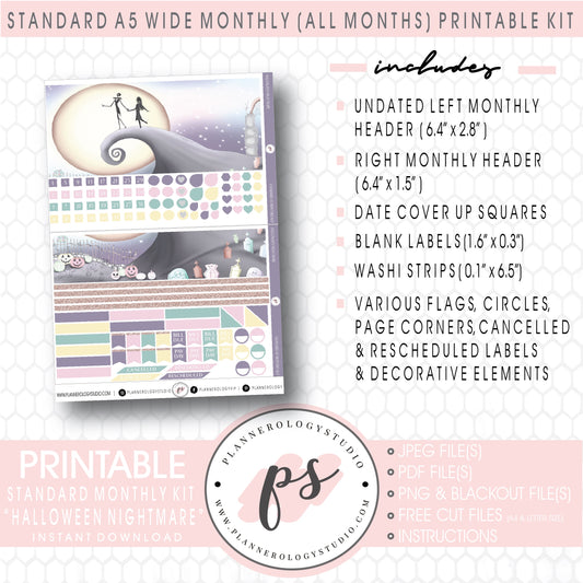 Halloween Nightmare Monthly Kit Digital Printable Planner Stickers (Undated All Months for Standard A5 Wide Planners)