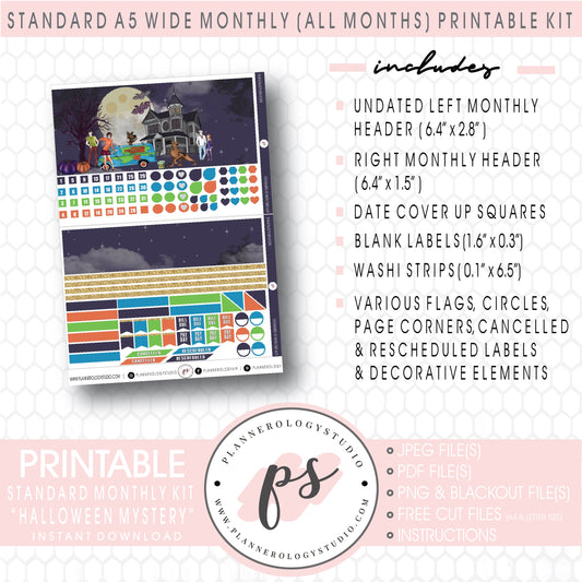 Halloween Mystery Monthly Kit Digital Printable Planner Stickers (Undated All Months for Standard A5 Wide Planners)