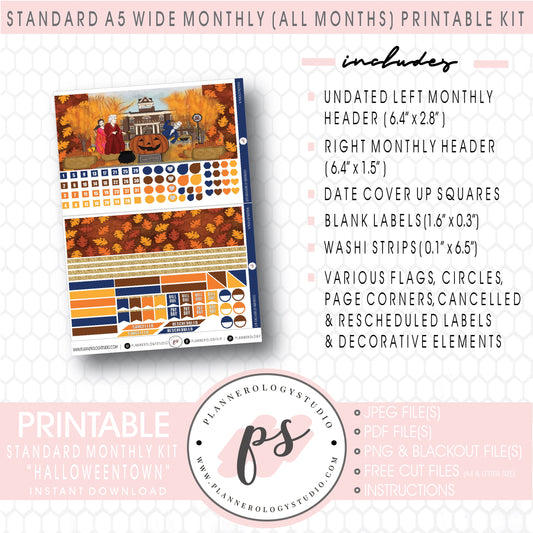 Halloweentown Monthly Kit Digital Printable Planner Stickers (Undated All Months for Standard A5 Wide Planners)