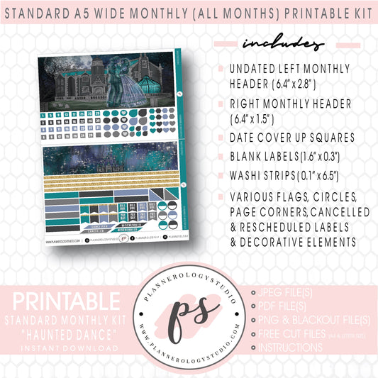 Haunted Dance Monthly Kit Digital Printable Planner Stickers (Undated All Months for Standard A5 Wide Planners)