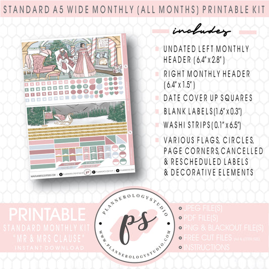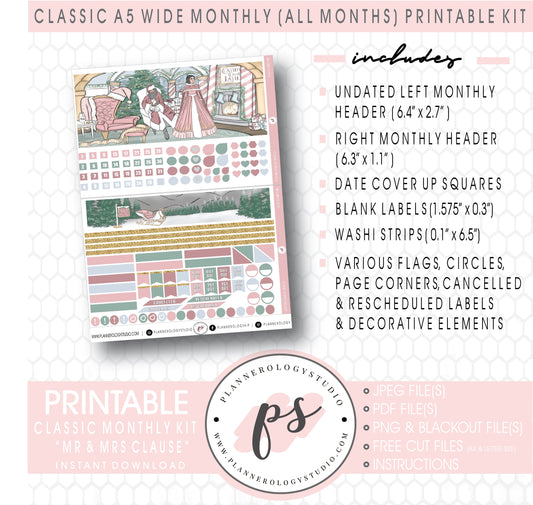 Mr & Mrs Clause Monthly Kit Digital Printable Planner Stickers (Undated All Months for Classic A5 Wide Planners)