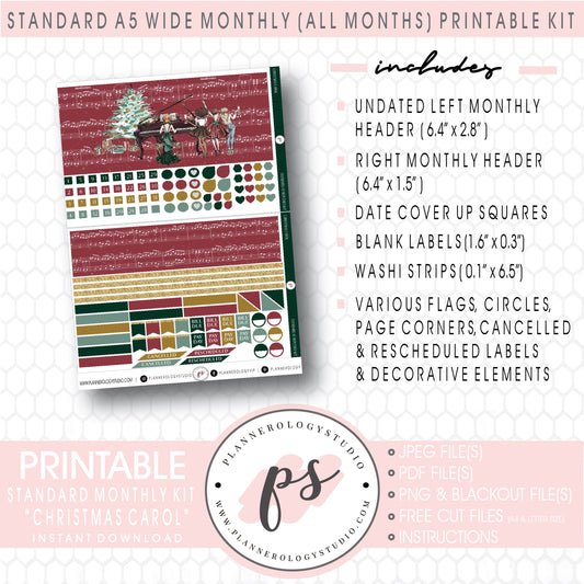 Christmas Carol Monthly Kit Digital Printable Planner Stickers (Undated All Months for Standard A5 Wide Planners)