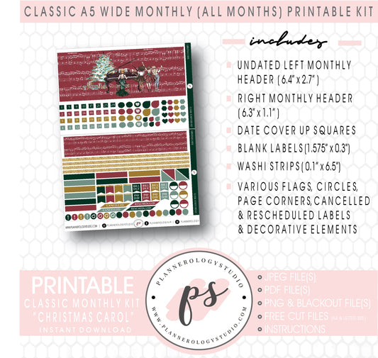 Christmas Carol Monthly Kit Digital Printable Planner Stickers (Undated All Months for Classic A5 Wide Planners)
