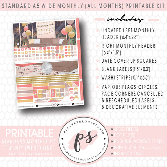 Twenty Twenty One New Years Monthly Kit Digital Printable Planner Stickers (Undated All Months for Standard A5 Wide Planners)