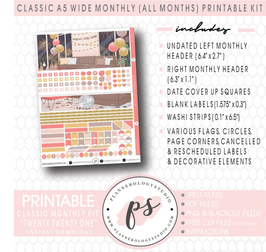 Twenty Twenty One New Years Monthly Kit Digital Printable Planner Stickers (Undated All Months for Classic A5 Wide Planners)