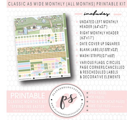 Springtime Easter Monthly Kit Digital Printable Planner Stickers (Undated All Months for Classic A5 Wide Planners)