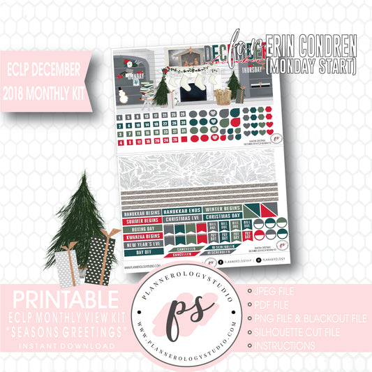 Seasons Greetings Christmas December 2018 Monthly View Kit Digital Printable Planner Stickers (for use with Classic Happy Planner)