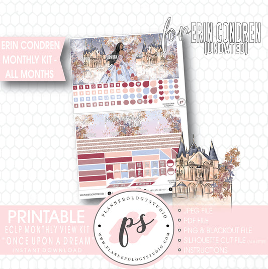 Once Upon a Dream Undated Monthly View Kit (All Months) Digital Printable Planner Stickers (for Standard A5 Wide Monthly 1.6" Width Date Boxes)