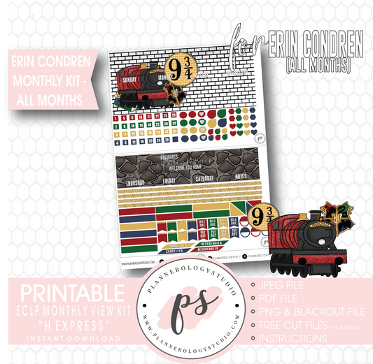 H Express Undated Monthly View Kit (All Months) Digital Printable Planner Stickers (for Standard A5 Wide Monthly 1.6" Width Date Boxes)