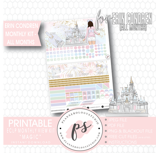 Magic (Disney Inspired) Undated Monthly View Kit (All Months) Digital Printable Planner Stickers (for Standard A5 Wide Monthly 1.6" Width Date Boxes)