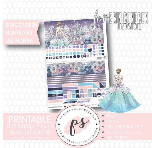 Magical Winter Undated Monthly View Kit (All Months) Digital Printable Planner Stickers (for Standard A5 Wide Monthly 1.6" Width Date Boxes)
