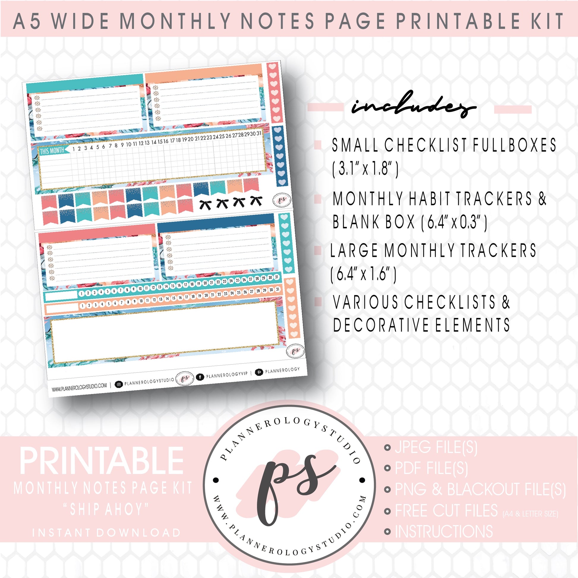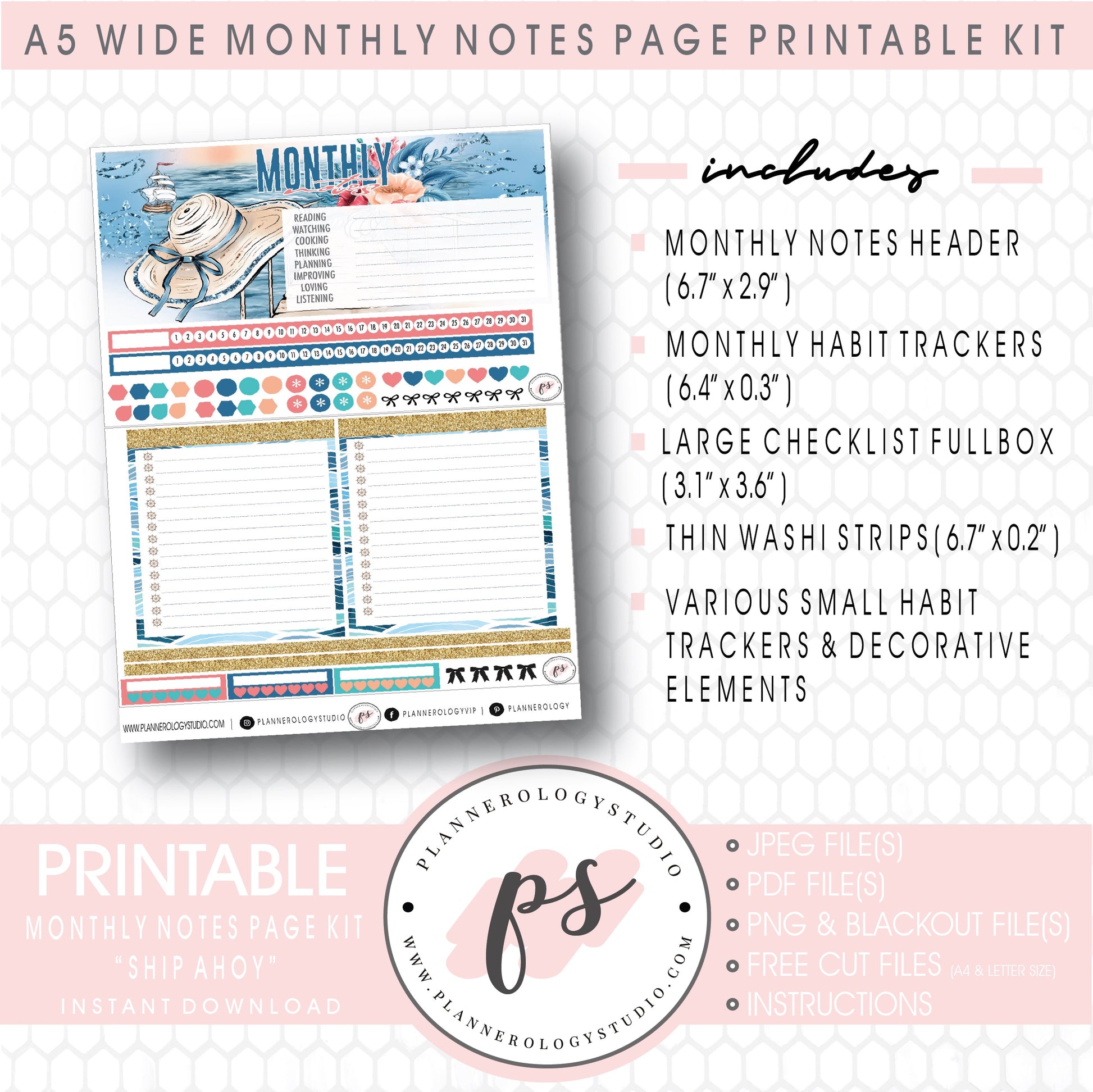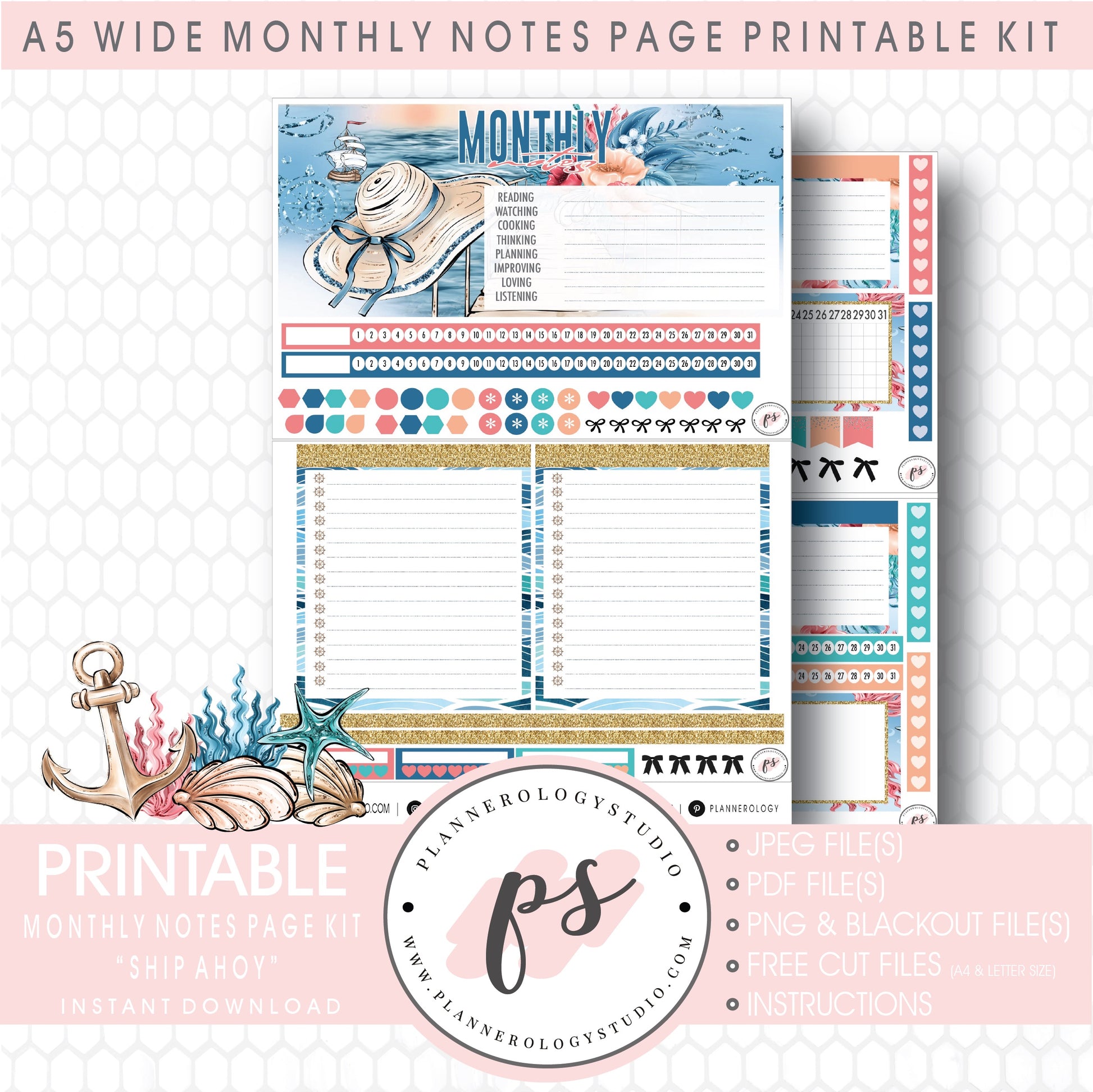 Ship Ahoy Monthly Notes Page Kit Digital Printable Planner Stickers (for use with Standard A5 Wide Planners)