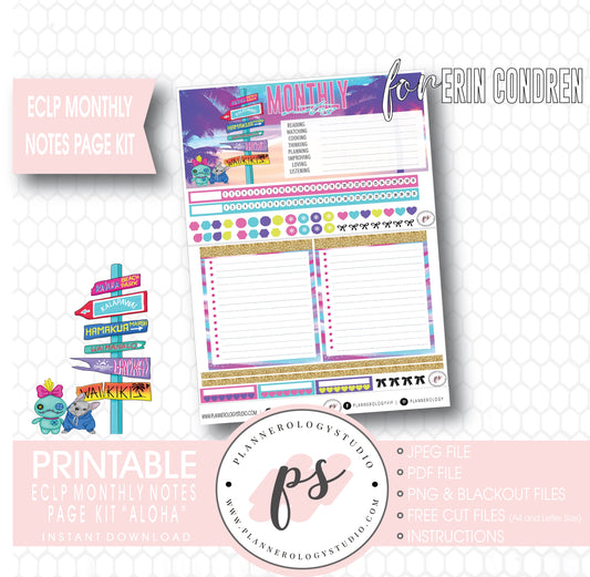 Aloha Monthly Notes Page Kit Digital Printable Planner Stickers (for use with Standard A5 Wide Planners)