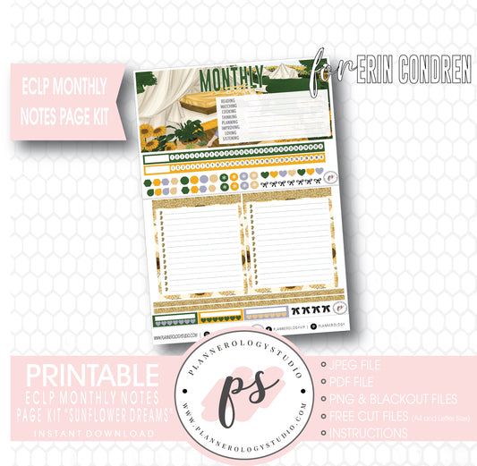 Sunflower Dreams Monthly Notes Page Kit Digital Printable Planner Stickers (for use with Standard A5 Wide Planners)
