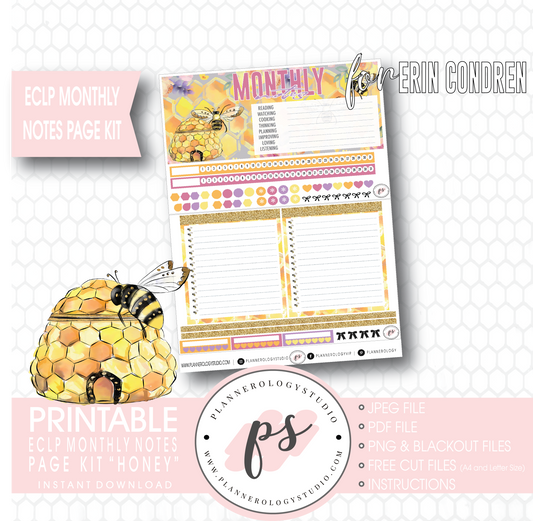 Honey Monthly Notes Page Kit Digital Printable Planner Stickers (for use with Standard A5 Wide Planners)