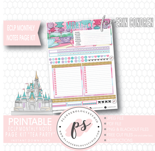 Tea Party Monthly Notes Page Kit Digital Printable Planner Stickers (for use with Standard A5 Wide Planners)