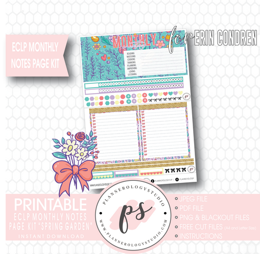 Spring Garden Monthly Notes Page Kit Digital Printable Planner Stickers (for use with Standard A5 Wide Planners)