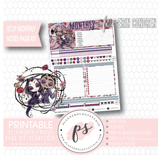 Scary Love (Valentine's Day) Monthly Notes Page Kit Digital Printable Planner Stickers (for use with Standard A5 Wide Planners)