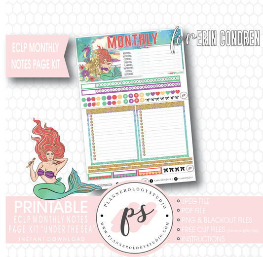 Under the Sea Monthly Notes Page Kit Digital Printable Planner Stickers (for use with Standard A5 Wide Planners)