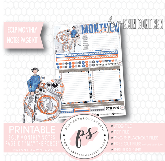 May the Force (Star Wars) Monthly Notes Page Kit Digital Printable Planner Stickers (for use with Standard A5 Wide Planners)