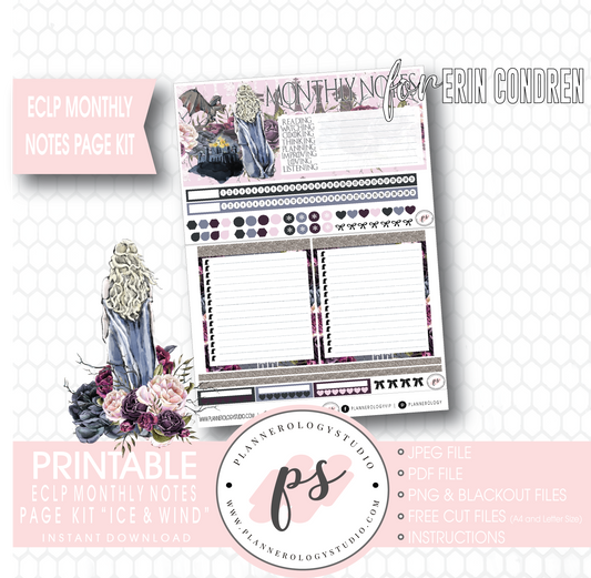 Ice & Wind (Game of Thrones) Monthly Notes Page Kit Digital Printable Planner Stickers (for use with Standard A5 Wide Planners)