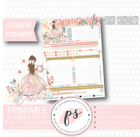 Easter Bloom Monthly Notes Page Kit Digital Printable Planner Stickers (for use with Standard A5 Wide Planners)