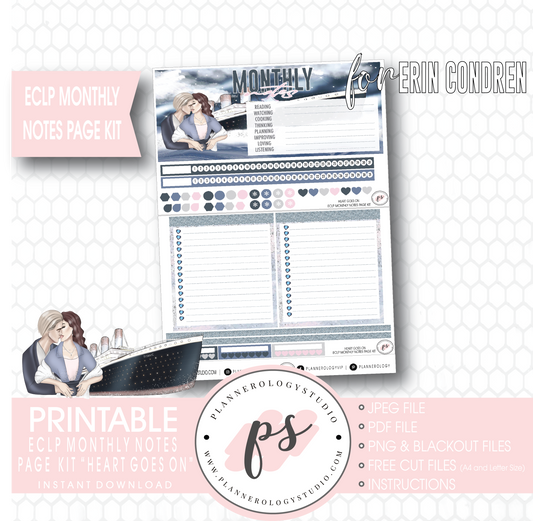 Heart Goes On (Titanic) Monthly Notes Page Kit Digital Printable Planner Stickers (for use with Standard A5 Wide Planners)