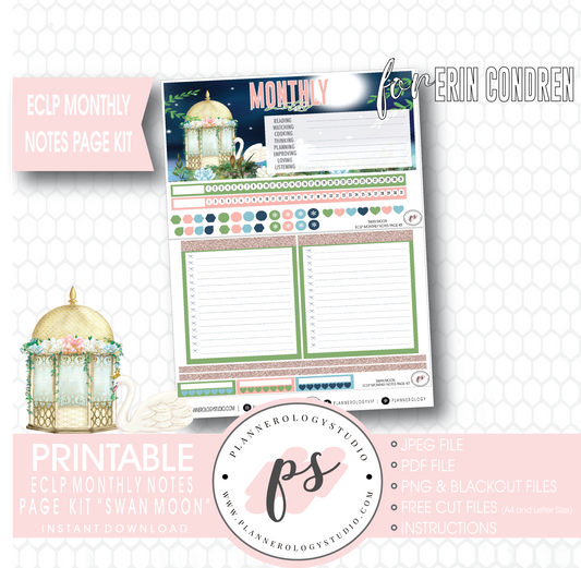 Swan Moon Monthly Notes Page Kit Digital Printable Planner Stickers (for use with Standard A5 Wide Planners)