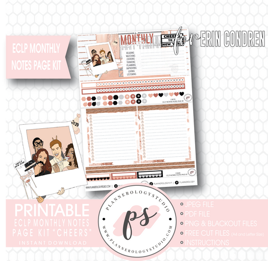Cheers New Years Monthly Notes Page Kit Digital Printable Planner Stickers (for use with Standard A5 Wide Planners)