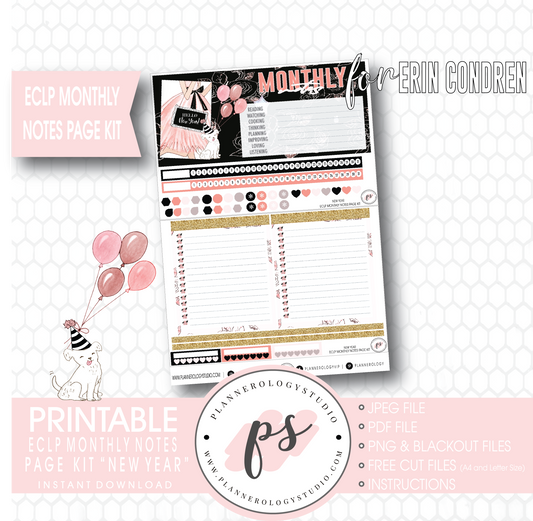 New Year Monthly Notes Page Kit Digital Printable Planner Stickers (for use with Standard A5 Wide Planners)