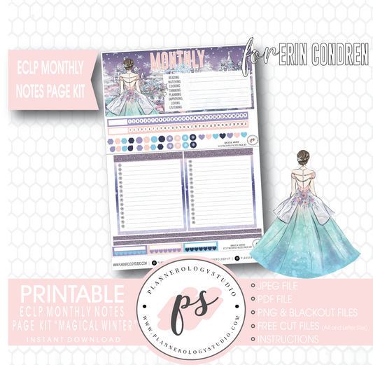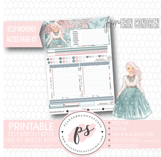 Magical Winter Monthly Notes Page Kit Digital Printable Planner Stickers (for use with Standard A5 Wide Planners)