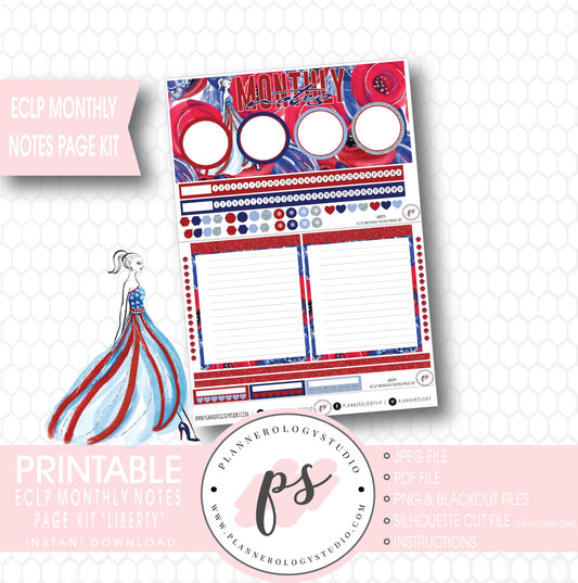 Liberty Independence Day Monthly Notes Page Kit Digital Printable Planner Stickers (for use with Standard A5 Wide Planners)