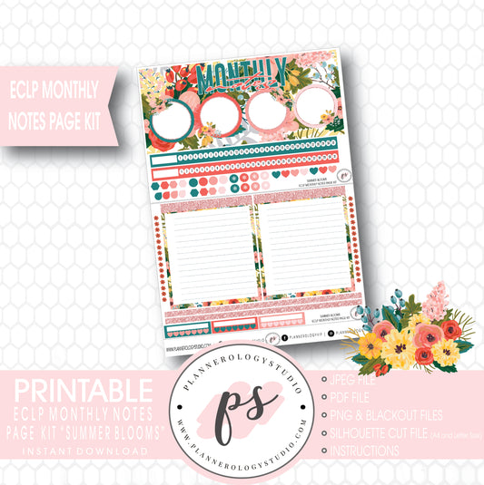 Summer Blooms Monthly Notes Page Kit Digital Printable Planner Stickers (for use with Standard A5 Wide Planners)