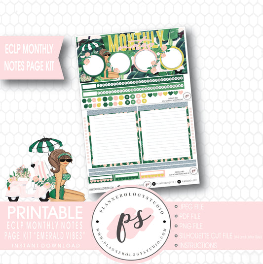 Emerald Vibes Monthly Notes Page Kit Digital Printable Planner Stickers (for use with Standard A5 Wide Planners)