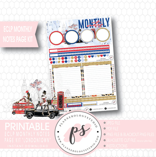 Londontown Monthly Notes Page Kit Digital Printable Planner Stickers (for use with Standard A5 Wide Planners)