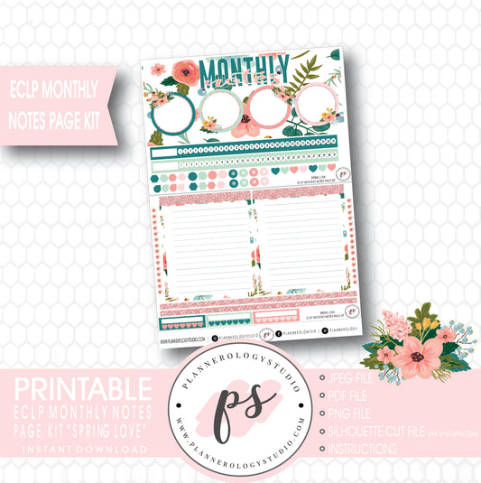 Spring Love Monthly Notes Page Kit Digital Printable Planner Stickers (for use with Standard A5 Wide Planners)