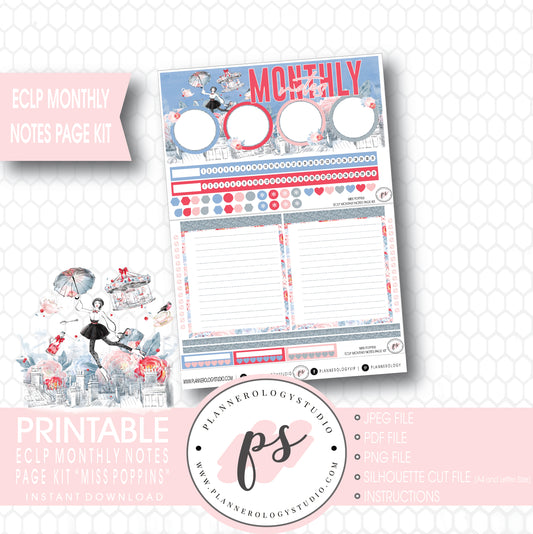 Miss Poppins (Mary Poppins) Monthly Notes Page Kit Digital Printable Planner Stickers (for use with Standard A5 Wide Planners)